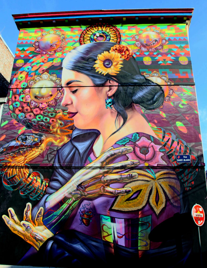 Lady Alezia a également travaillé dans le quartier de Moulins avec le collectif mexicain « Tlacolulokos ». Originaire de la ville de Tlacolula, dans l’état de Oaxaca, le collectif réinterprète les codes de la tradition zapotèque à l’aune d’un XXIème siècle urbain et violent.