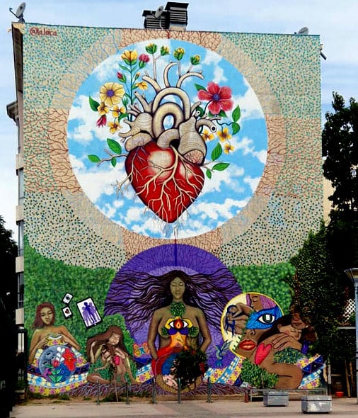 Né à Huancayo et demeurant à Lima, Jade Rivera est un artiste très connu au niveau international. Il avait été invité à Lille par le Collectif Renart pour la 4ème édition de la Biennale Internationale d’Art Mural (BIAM), en 2019 et avait créé une fresque magnifique, à revoir dans l’article que j’ai dédié à cette BIAM. Alors, j’ai eu un choc quand j’ai vu les photos de ses œuvres dans sa ville.