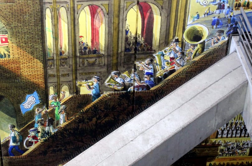 Cette fresque a vraiment changé le quotidien des usagers du métro. Et j’ai été très émue lorsque, le jour de l’inauguration (en 2000), le gardien du métro m’a dit : « Cette fresque m’a changé la vie. Avant, j’étais dans un trou, maintenant le monde est à moi. »