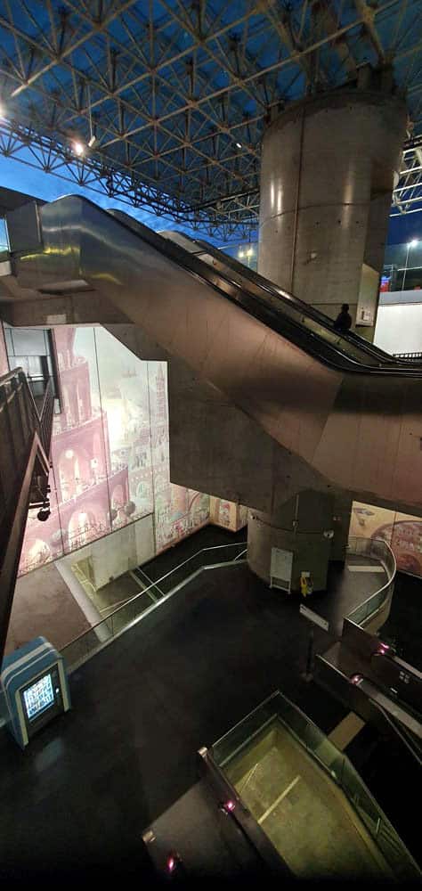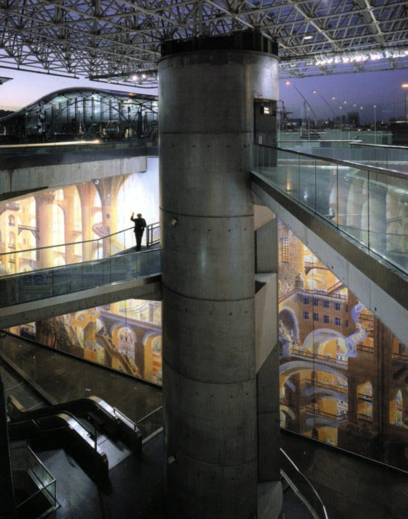 La descente vers le métro se fait par un immense puits de 18 mètres de haut, avec des passerelles, des escaliers et des escaliers mécaniques. A l’époque, quand on l’empruntait, on avait l’impression de descendre dans les abysses, dans un gouffre. Pour les usagers du métro, c’était souvent vécu comme une épreuve.